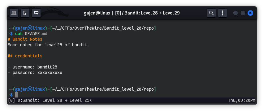 git clone ssh://[email protected]:2220/home/bandit28-git/repo